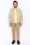 The LCB200S BEIGE men's jacket from the Schott brand is a bomber jacket made of beige suede sheepskin leather. It is a jacket suitable for fall and winter. It has a regular or straight cut, suitable for all body types.