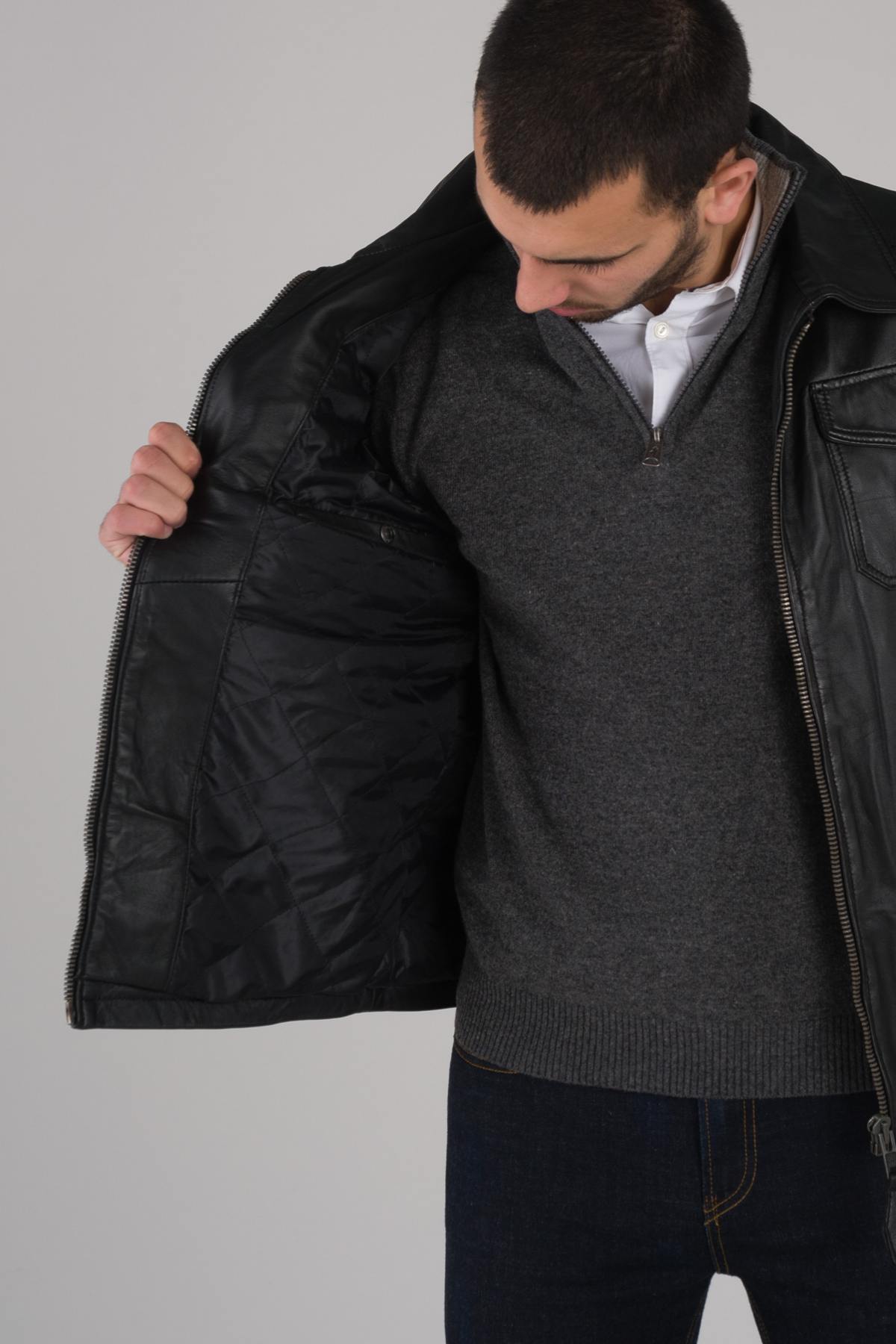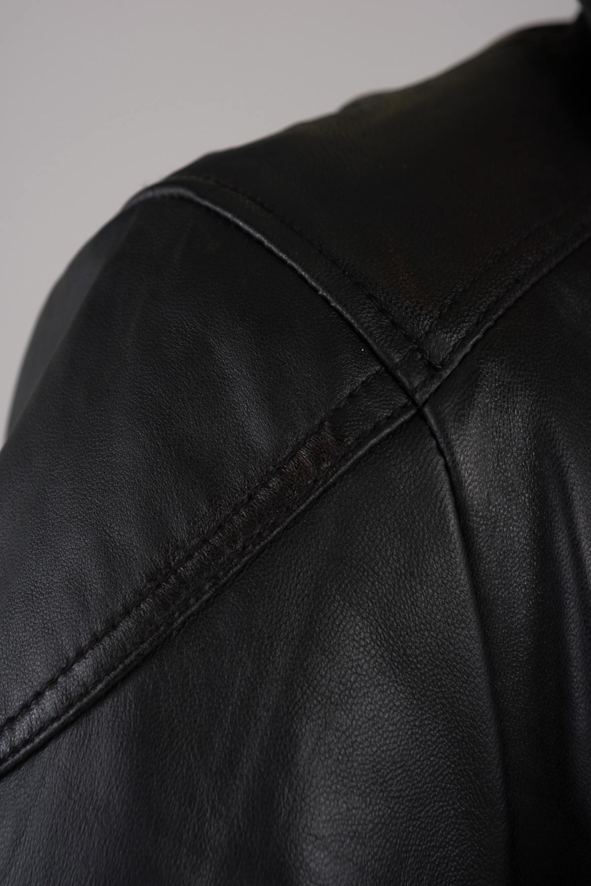 Looking for a leather jacket with a shirt collar? The LCKENNEDY is a sure value for lovers of genuine leather! THE DESIGN Sewn in fine black sheep leather Slightly matte...