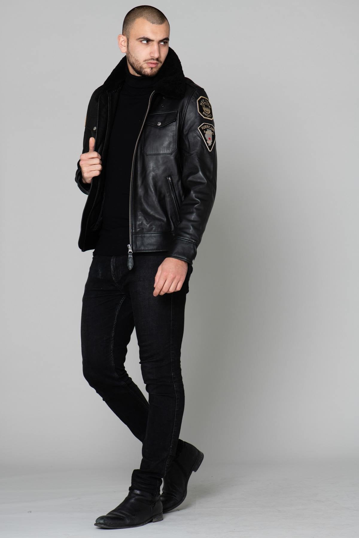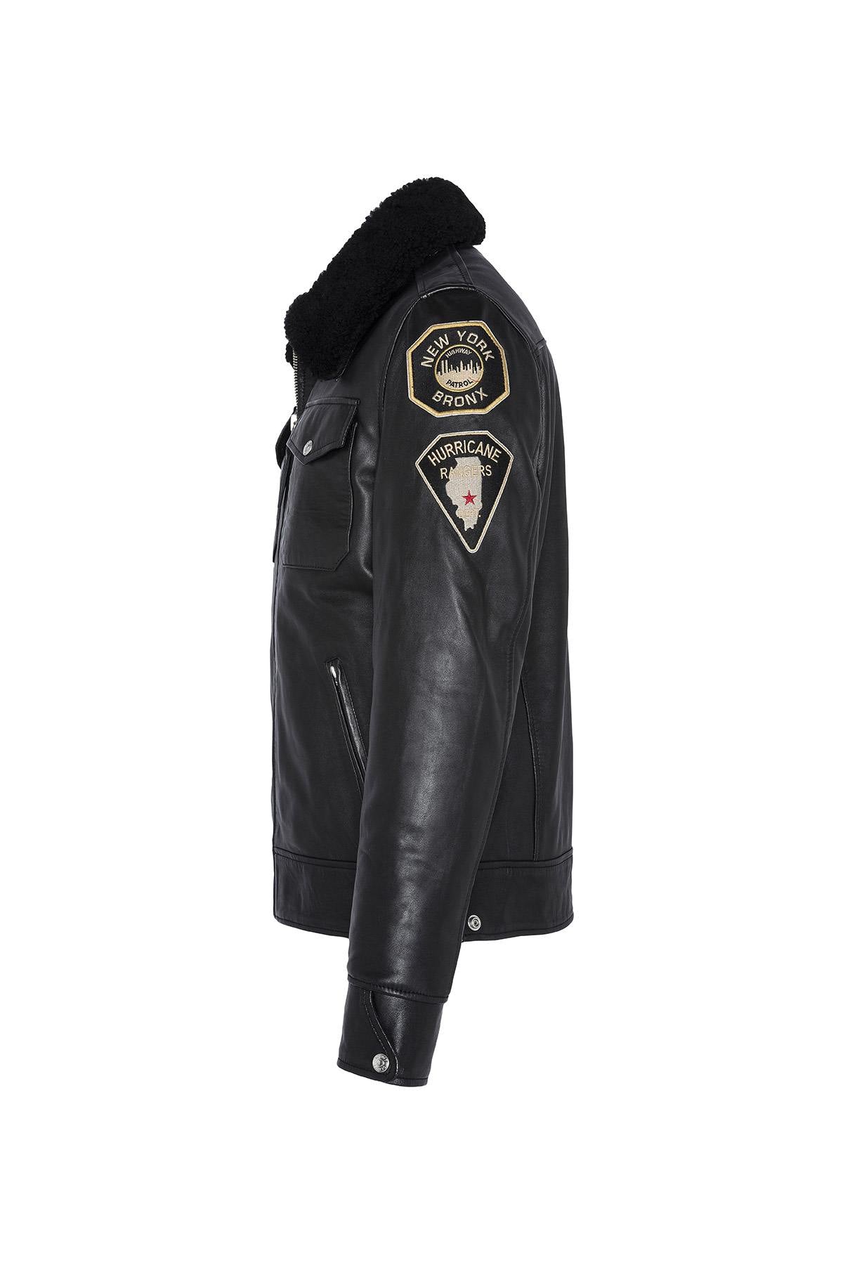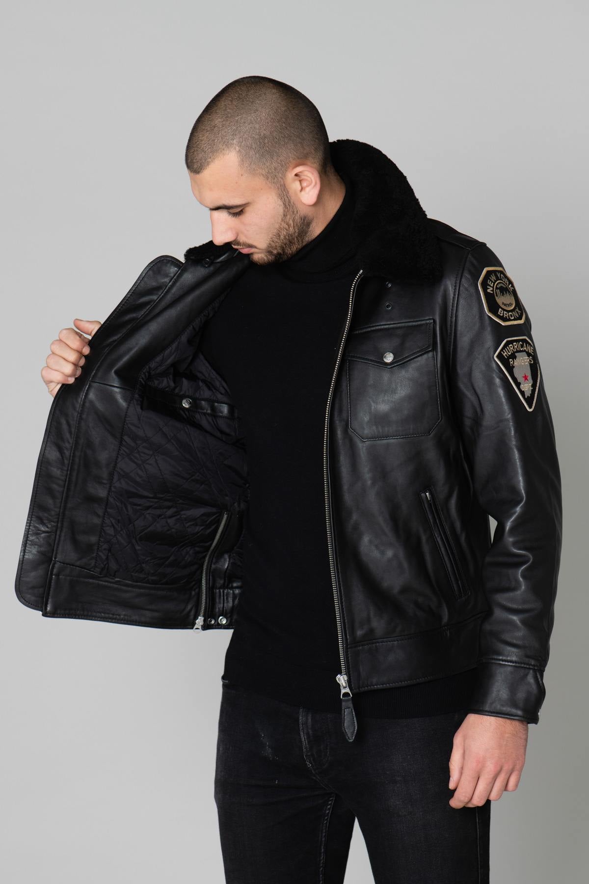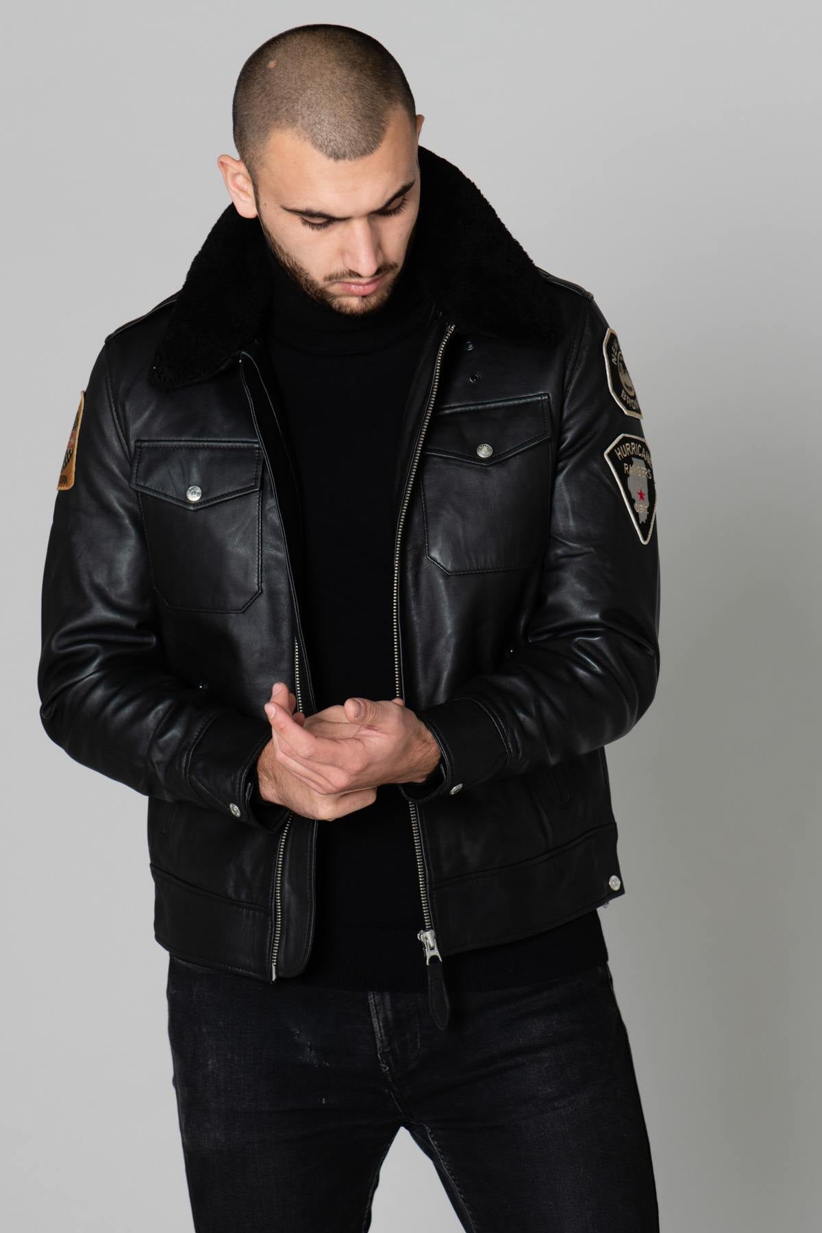 Black US Police Leather Jacket - Image n°1