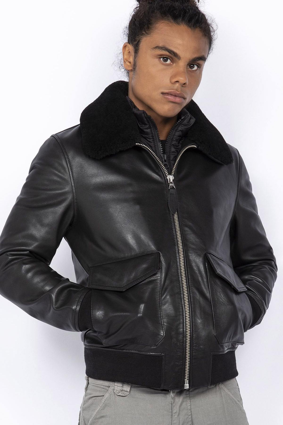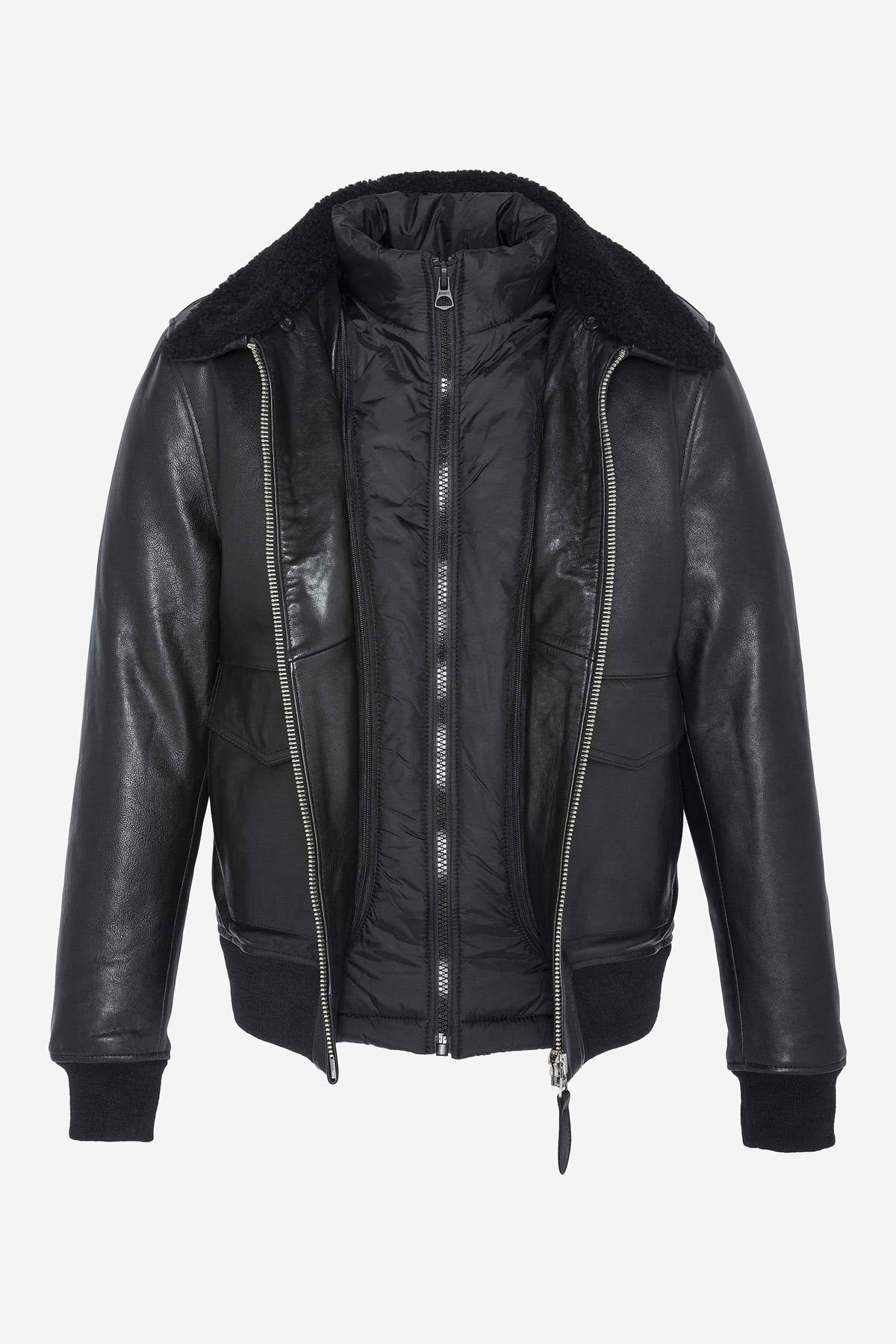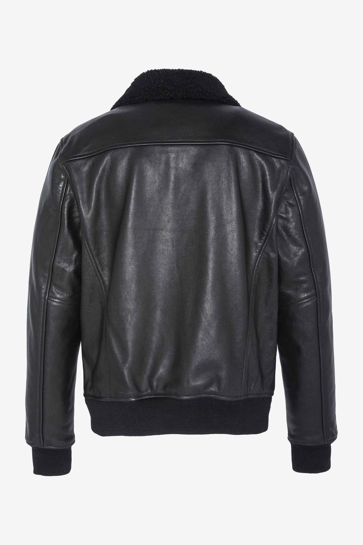 Black pilot jacket with removable collar - Image n°1