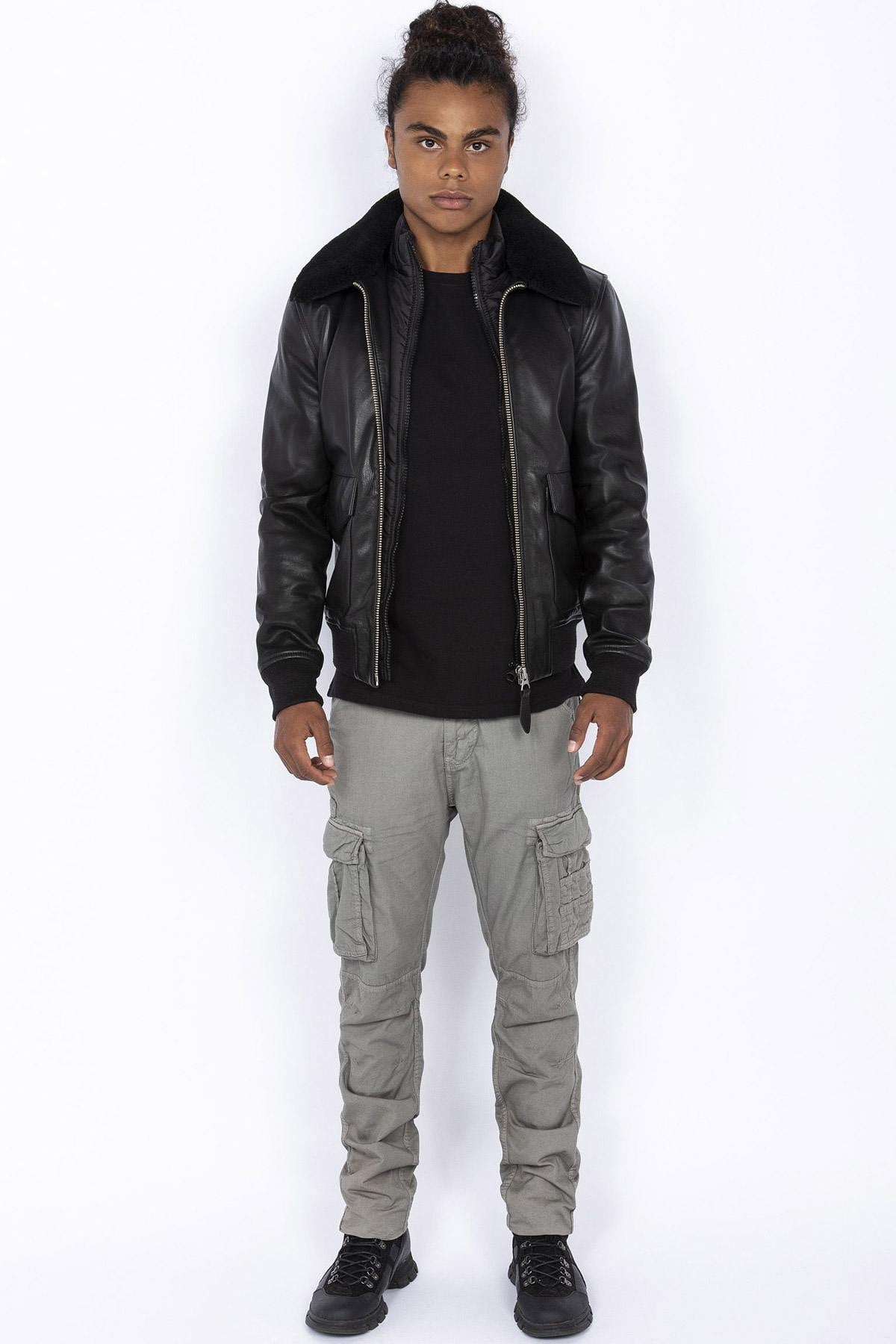 Black pilot jacket with removable collar - Image n°2