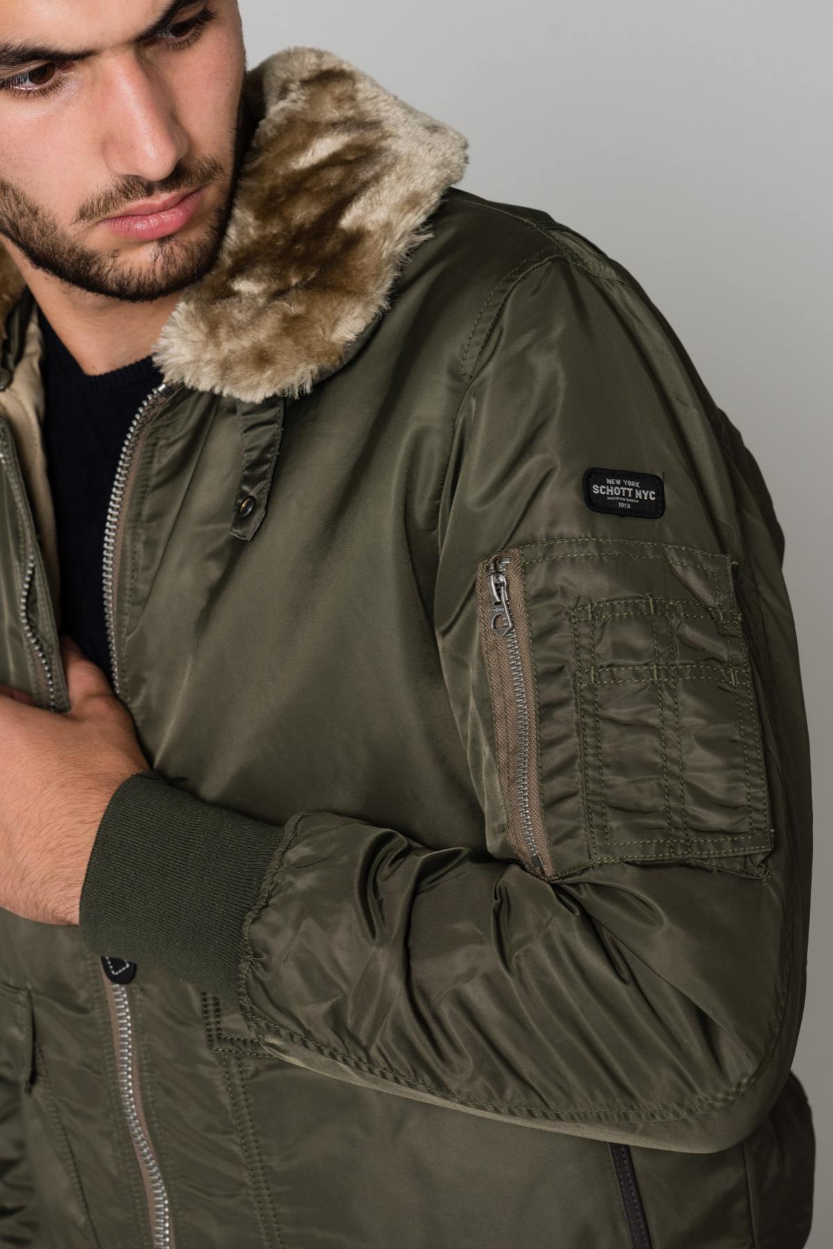 The OHARA ARMY KAKI is a magnificent aviator from the SCHOTT brand. Timeless model from the brand with a removable faux fur collar with a button. Brown leather fastener at the...