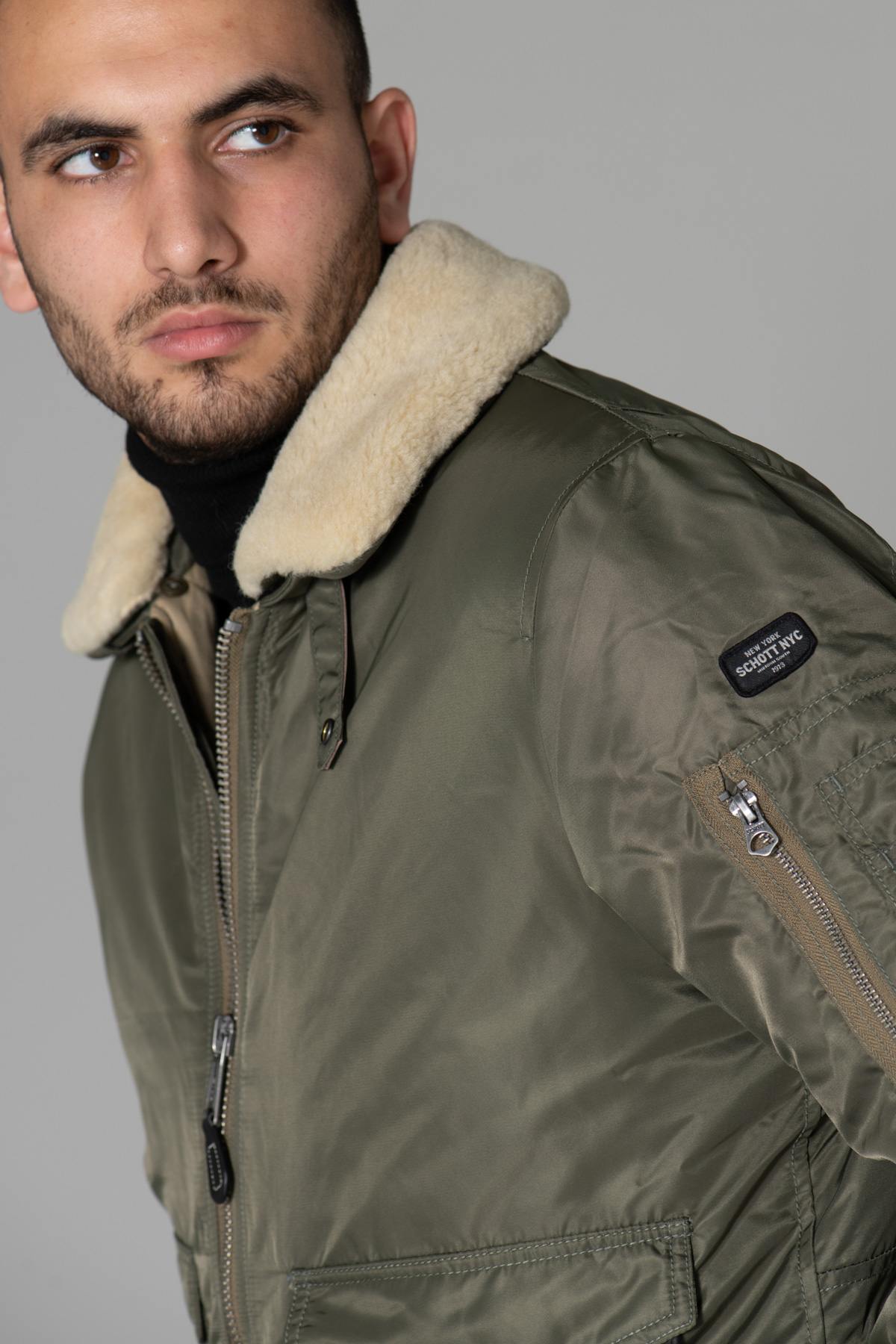 Khaki pilot jacket with beige fur-lined collar - Image n°8