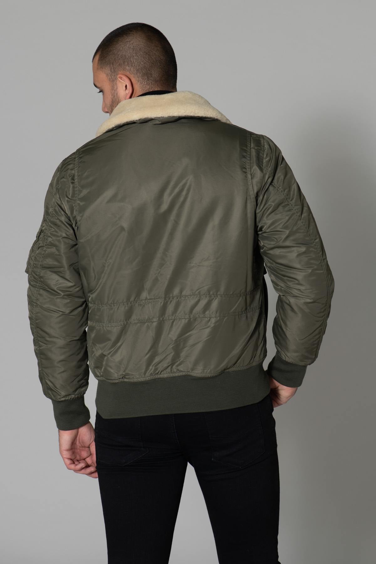 Khaki pilot jacket with beige fur-lined collar - Image n°3