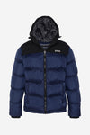 The UTAH2 ROYAL BLUE men's jacket from the Schott brand is a down jacket made of navy blue polyester. It is a jacket suitable for fall and winter.