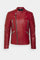 This jacket is a jacket made of high-end lambskin which is distinguished by its softness, finesse and lightness. incomparable. Its red color will spice up your rebellious look full of character. The biker collar closes with a silver snap button. Donning is done using the with a stylish asymmetric zip closure. The zipped chest and lower pockets accompany the metallic decorations of this model. These also include silver rivets. on the bust.