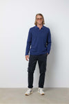 The CHAIN POLO LS DARK BLUE polo shirt from Hero Seven in detail