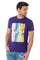 This purple t-shirt is highlighted by a colorful print featuring a basketball player.