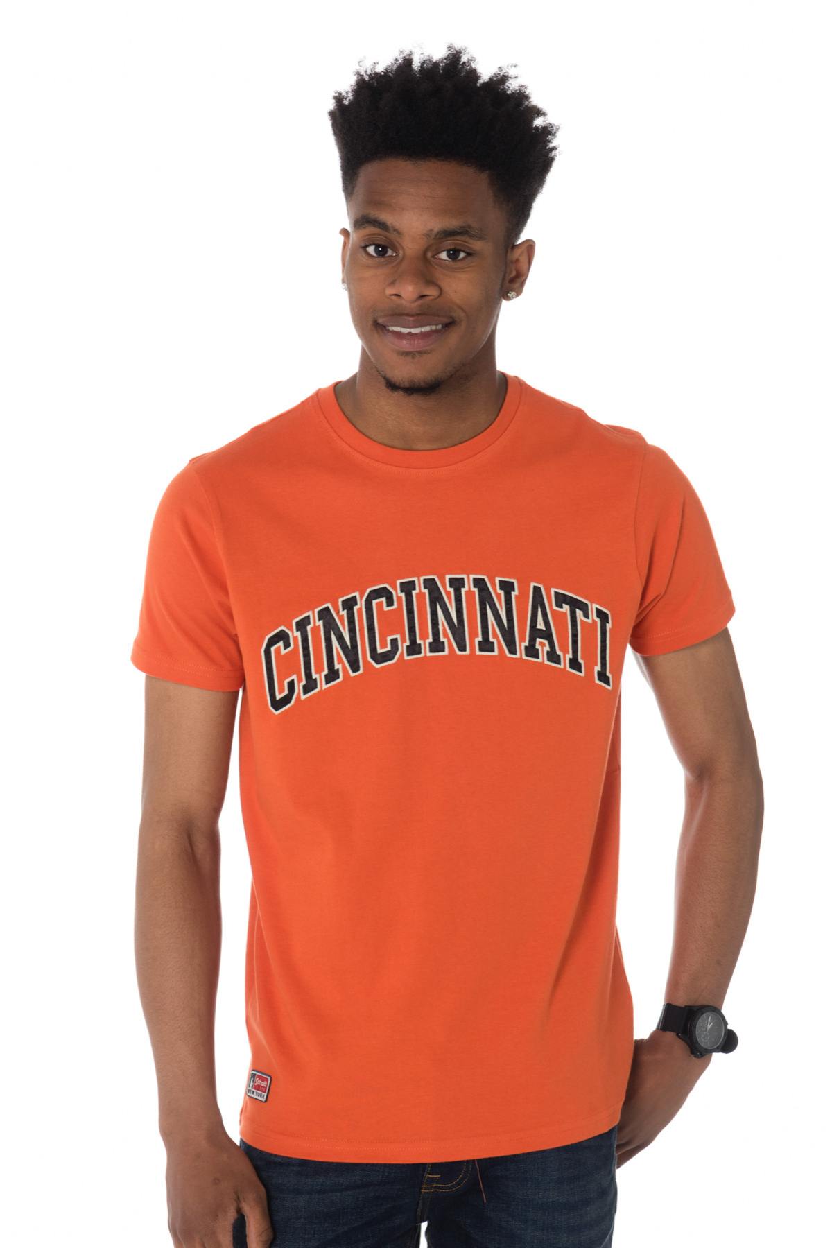 Round neck and short sleeves, this orange t-shirt is highlighted by the embroidered CINCINNNATI logo. in white and black on the front.