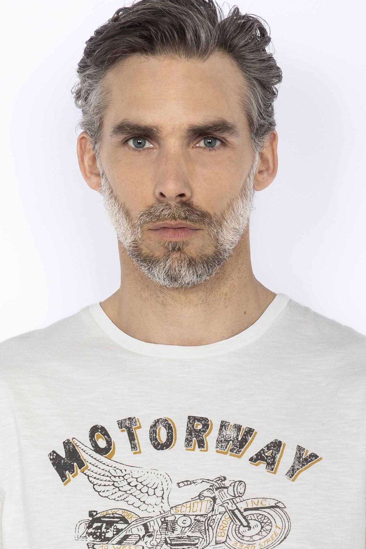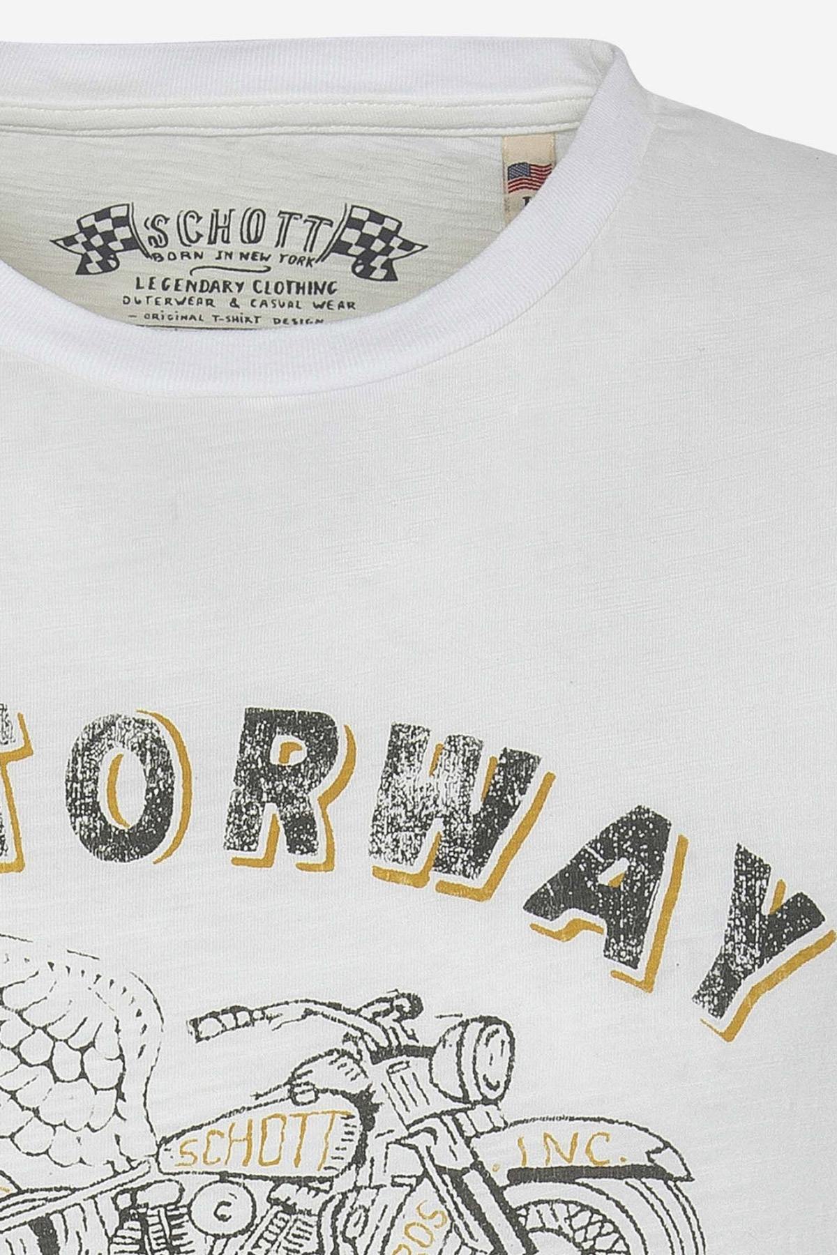 The Tsdriss Off White is a perfect t-shirt to start the sunny days, an essential element of your men's wardrobe. This product from the Schott brand is racing to set the trend this season.