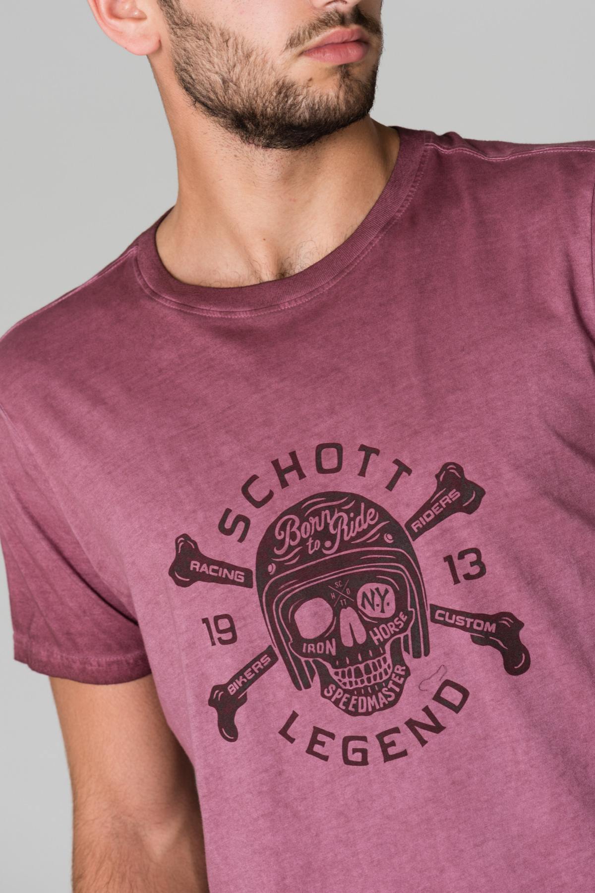 Bring a colorful touch to your home. your look with the TSLEGEND BORDEAUX. This t-shirt signed by Schott has a magnificent skull on the front. Round collar and short sleeves. Composition:...