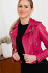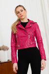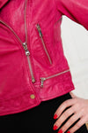 True to its originality, the OAKWOOD brand presents this KYOTO FUSHIA 548 women's jacket. A perfecto revisited with its originality. in the most beautiful way in a slim cut that is sure to seduce. It is made à comfortable and soft sheepskin leather base.