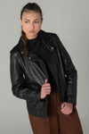 The perfecto is an icon in the world of leather jackets and the stylists of the Rose Garden brand revisit it for your greatest pleasure in this Breda jacket Curve Sheep Manila Black. It is made to perfection. sheep leather base which gives it its solidity. and comfort.