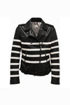 Biker jacket in black leather with white lines - Image n°1
