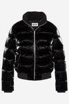 Black satin effect hooded down jacket - Image n°1