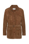 Long caramel suede leather coat - Image n°1
