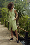 Light Green Genuine Leather Wrap Dress - Image n°1