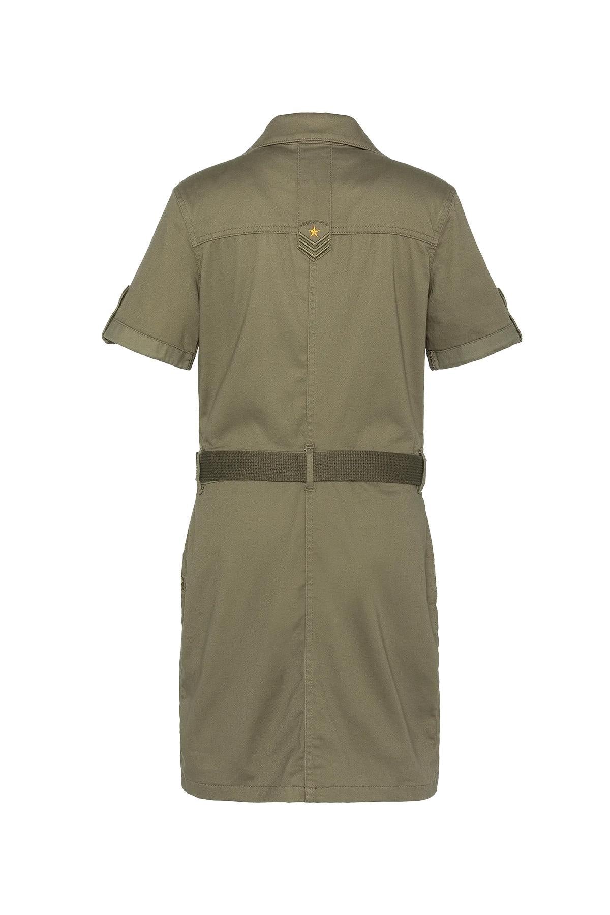 Khaki army dress with belt - Image n°1