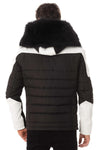 Denna dunjacka i polyester med utsmyckat inlägg. De vita lammskinnselementen förstärks av svart tvättbjörnspäls som du mycket enkelt kan ändra som du vill eftersom märket erbjuder sina pälsar i flera färger som du hittar på vår sida.