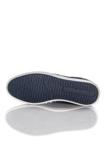 Tyg innersula och kontrasterande vit elastomer yttersula.