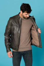 COLLINS LAMB PAOLO OLIVE är en olivfärgad lammskinnsjacka från DAYTONA .