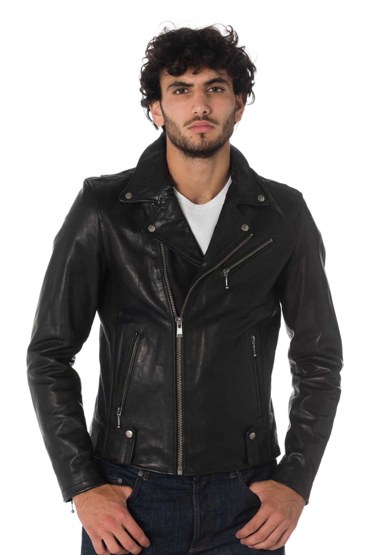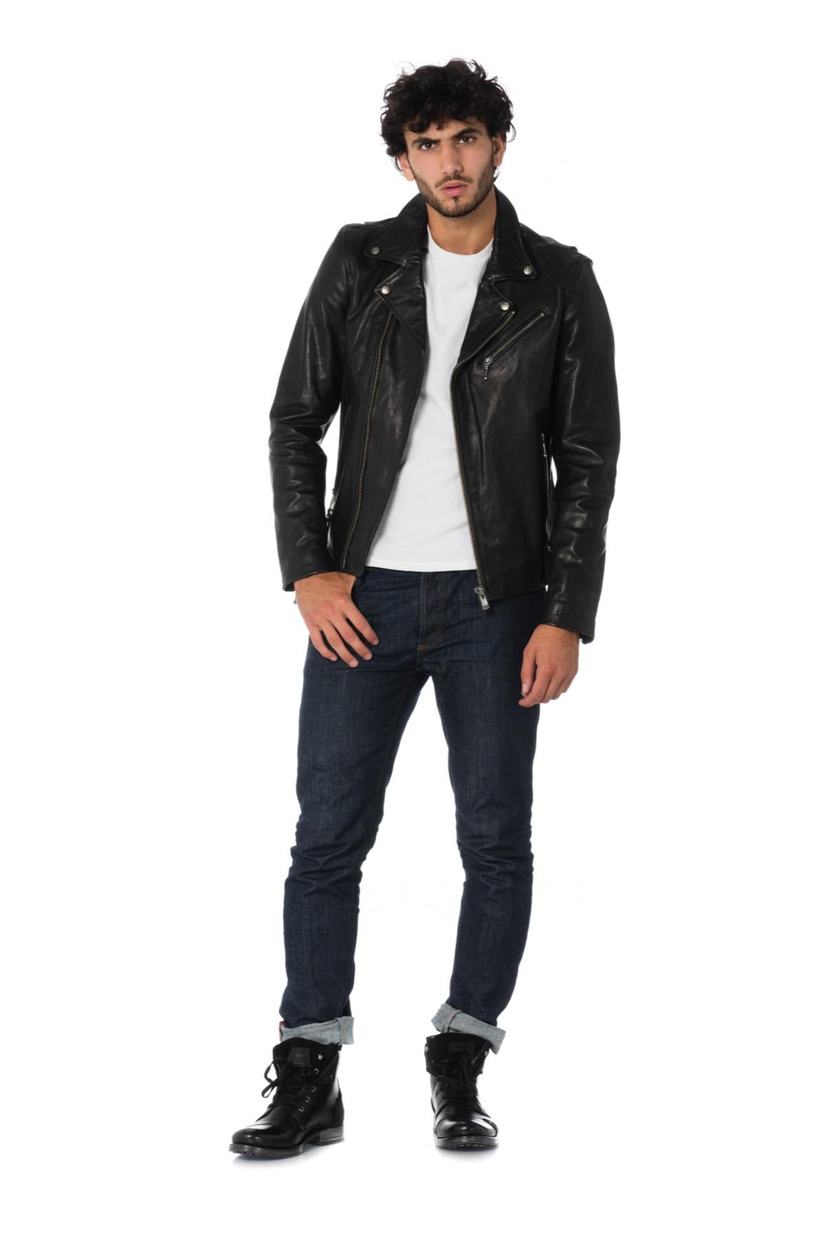 Med sitt åldrade koskinn är RING COW SEMI VEG BLACK en slitstark perfecto-jacka med en vintagelook perfekt för en biker-look.