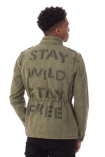 Stor "STAY WILD STAY FREE"-inskription på baksidan och Kaporal Jeans-inskription på framsidan.