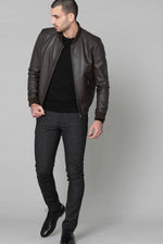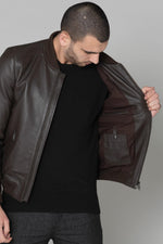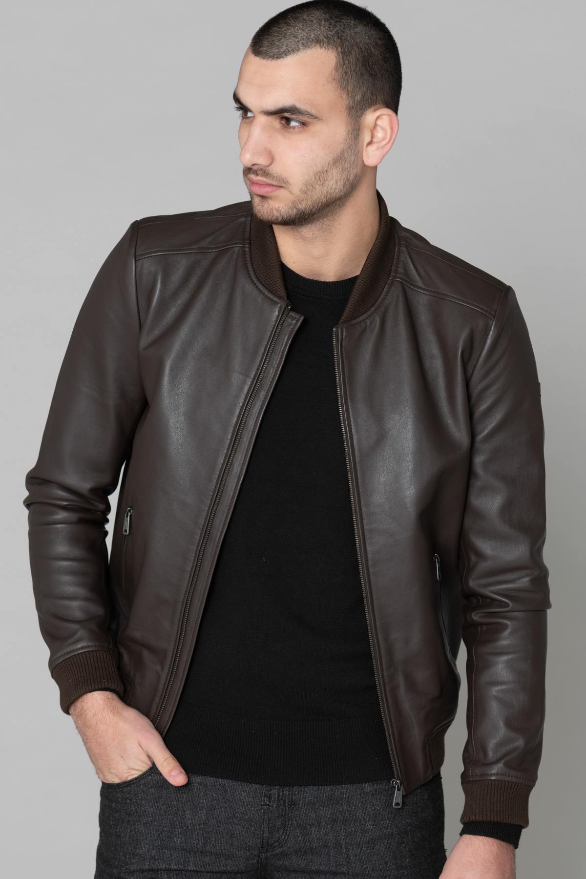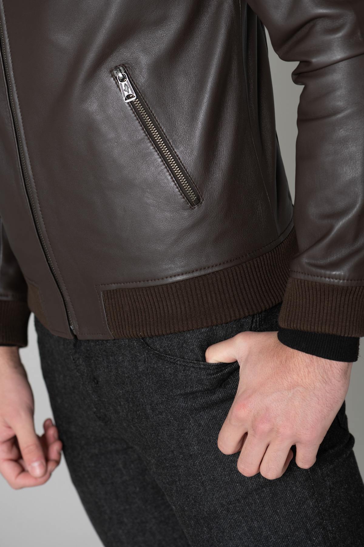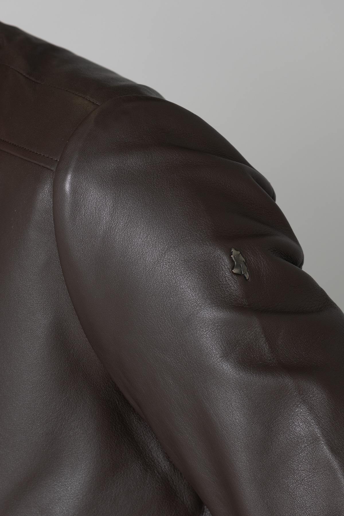 I kvalitetsfårskinn, brun till färgen med ribbade kanter vid krage, botten och ärmslut.