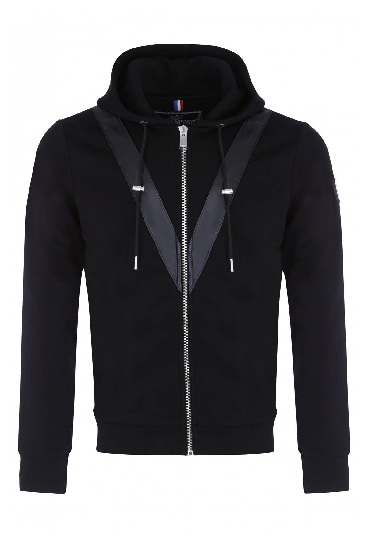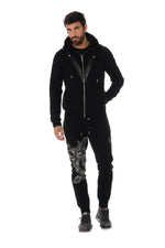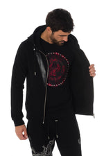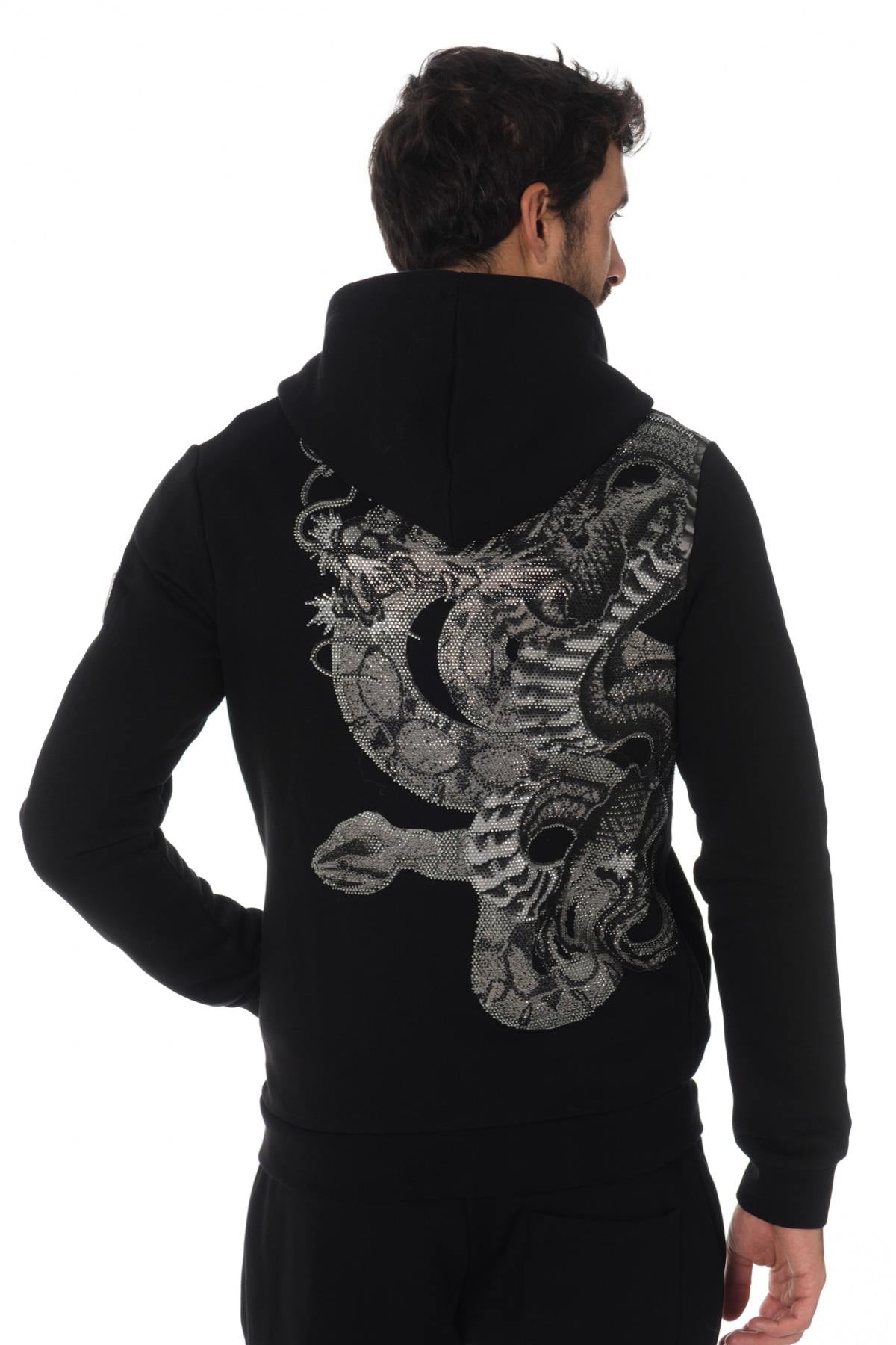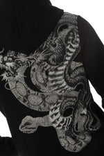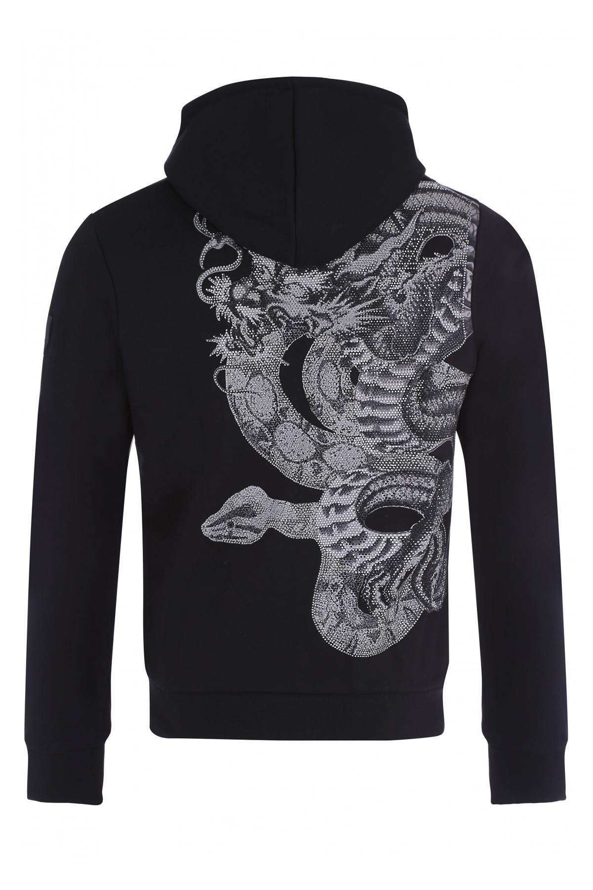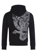 PORTLAND M300 BLACK är en sweatshirt med dragkedja. svart markerad av en orm och en drake helt i strass.