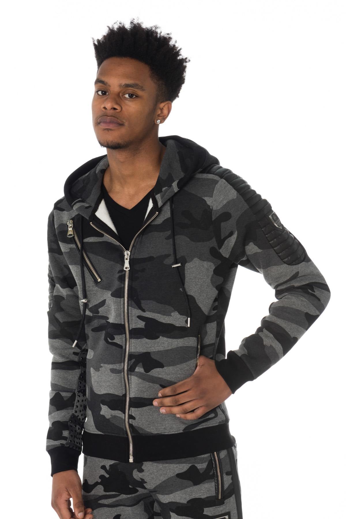 Visa upp en ultratrendig streetwear-stil! med TOMAS M301 CAMOU GREY sweatshirt med dragkedja.