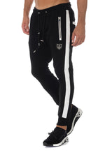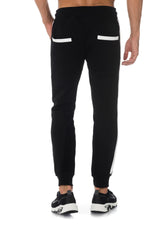 70 % bomull och 30 % polyester, PYTHON M300 BLACK/WHITE är svarta byxor förstärkta med hög midjeband. genom vita inslag på konstläderinsatserna som finns vid fickorna och längs varje ben.