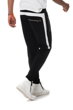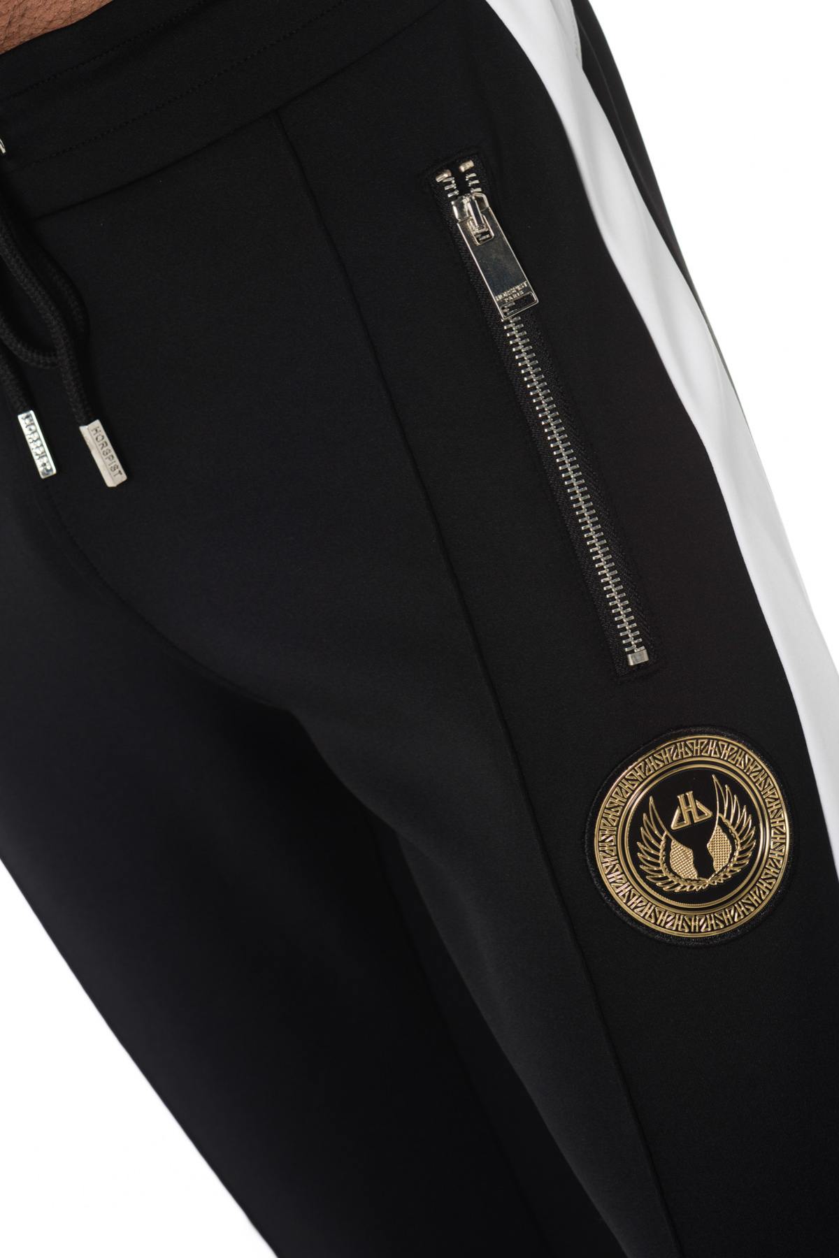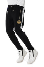 Dessa joggingbyxor har ett märkesmärke på fickan och även en dekorativ bård. vit längs halva benet samt på baksidan.