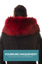 I svart och röd tvättbjörnspäls är den extremt mjuk vid beröring.