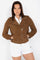 Dess vackra beige färg passar bra till din kropp. underbar med sin sammetsstruktur. Dess lågskurna krage är vackert dekorerad. av runda metallknappar. Den stängs med en lång, off-center metalldragkedja. åt vänster. Två fickor med dragkedja sys på varje sida, medan en annan är på sidan. höger om bröstet. En liten ficka Den knäppta klaffen är också placerad på sidan. höger sida. Epauletter pryder axlarna, medan dekorativa remmar finns på sidorna, i midjan.