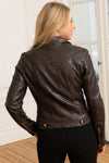 Olympe Lamb Vita R.Brown är en vacker grönsaksjacka i lammskinn för kvinnor från märket Daytona. Som namnet antyder är denna perfecto-modell mörkbrun till färgen, vilket ger en mycket elegant look. Denna perfecto har snittet som en klassisk jacka, men sticker ut med sin off-center stängning. Det finns 4 fickor (inklusive en på bröstnivå) alla stängda med dragkedja. Det något passande snittet på denna perfecto accentuerar dess avslappnade sida. feminin och elegant. Du kan bära den med en elegant outfit (tygbyxor och klackar) såväl som med en mer avslappnad outfit (sneakerjeans).