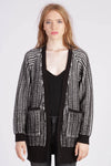 Ribbstickad krage, ärmslut och nederkant.