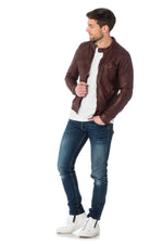 Med sin bikerkrage och sin smala skärning väldigt nära kroppen passar denna jacka perfekt in i den rådande trenden.