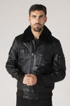 Upptäck LEGION ALPHA BLACK bomberjacka för män från Redskins, en modell av höst-vinterflygare, i svart fårskinn med pälskrage för en sofistikerad och autentisk look.