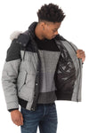 Den är gjord av polyester med nylonfoder och huva med dragsko mer en flik med tryckknappar. Den är avtagbar med dragkedja, dekorerad med syntetisk päls även avtagbar med tryckknappar.