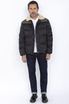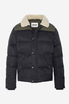 Black and khaki down jacket with sherpa collar - Image n°1