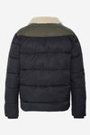Black and khaki down jacket with sherpa collar - Image n°3