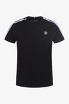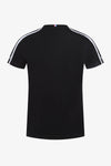 Denna modell har korta ärmar och en klassisk rund halsringning. Axlarna och ärmarna är dekorerade med vita kontrastband. Den berömda metalliska logotypen för det franska märket hänger stolt på bröstet, liksom det trefärgade bandet vid kragen. Vi hittar även det franska märkets etikett skriven under kragen, framtill. inuti t-shirten.