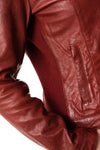 I rött fårskinn fodrat med läder. av bomull och polyester, denna jacka med slimfit-storleken är väldigt bekväm att bära. att bära.