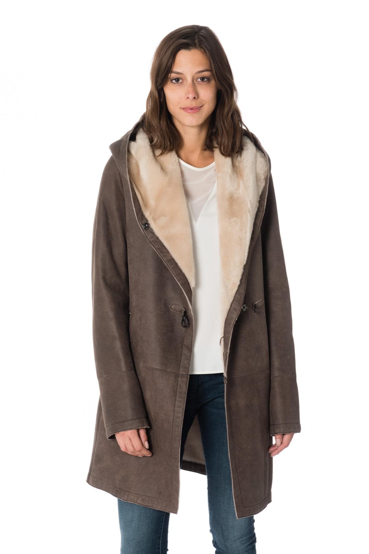 969 NAPPA LAMB BROWN är en magnifik långärmad kappa. huva i shearling lammskinn.