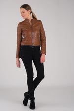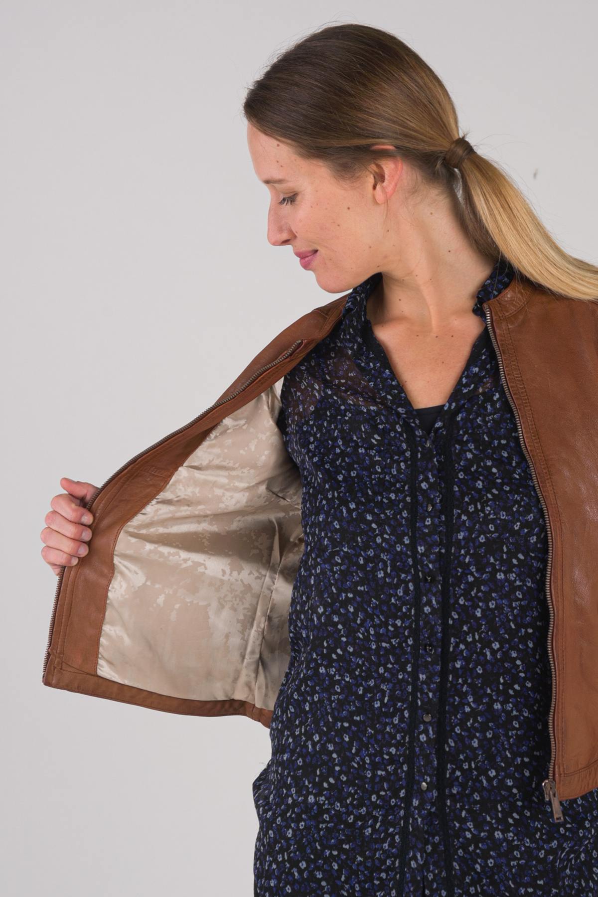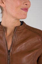 Chic och ren, denna konjaksfärgade Siara Earley-jacka från Redskins är en bikerjacka gjord av smidigt och lätt fårskinn.