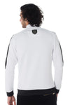 I textilkollektionen Horspist finns här STAR M304 modellen WHITE vit träningsjacka dekorerad med vita passpoaler. svart på ärmarna.