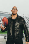 De Made in USA-jackor som erbjuds av Schott NYC är exceptionella plagg, gjorda för ambitiösa män. Det här stycket är inget undantag från regeln, och det sågs också slitet av referensen när det kommer till ambition: Dwayne Johnson, även känd som "The Rock". Den före detta brottaren blev actionfilmsstjärna i Hollywood, gick till Daytona 500, en ikonisk amerikansk biltävling, klädd i 121 BLACK av Schott NYC med stolthet. Han invigde också öppningen av NFL-säsongen 2024 med samma jacka.
