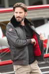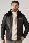 Denna "BERLINER DARK BROWN" bomberjacka från "Classic Legend Motors" för män är den perfekta förkroppsligandet av Royal Air Forces heroiska och äventyrliga anda. Med sitt robusta fårskinnsläder och tidlösa stil är det det perfekta plagget för älskare av autentiska klassiker.