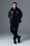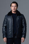 Upptäck flygarjackan JET ATLAS NAVY från Air and Space Force, designad för den moderna mannen som letar efter en elegant och robust flygarstil. I marinblått lammskinn utmärker sig denna säsongsjacka genom sitt regelbundna snitt och sitt smidiga utseende.