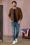 Schott LCBOWLINGX LIGHT BROWN teddyjacka är gjord av getskinn i mocka som erbjuder en mjuk struktur och ett nubuck-utseende. Dess tryckknappsstängning och tvåfärgade vita och bruna elastiska ribb vid krage, midja och ärmar ger en touch av sofistikering. Den har två patchfickor på framsidan och en invändig bomullsficka, vilket säkerställer både stil och praktisk. Denna jacka är en perfekt förkroppsligande av amerikansk college-stil, återupptagen av Schotts expertis för en modern och raffinerad look.